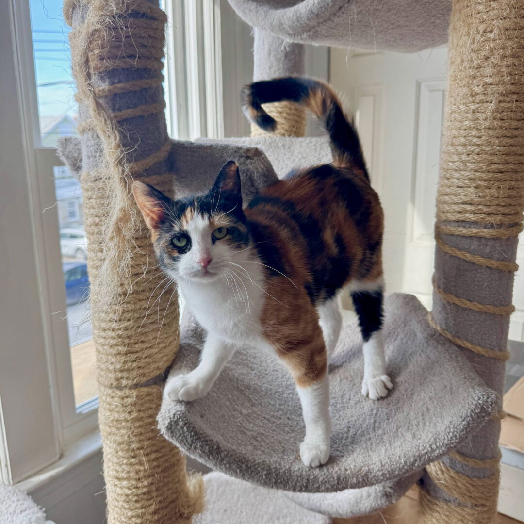 Trina is a stunningly gorgeous, gentle , loving young female calico who’s incredibly happy to be inside and safe now! She’s looking for that purrfect home she’s always dreamed of to get snuggles and attention. She has been ok around other cats , so a home with another sweet cat or a home as an only cat would work for her. When she was outside the family that was trying to help her had children and she loved when they pet her . So, a home with older children would also likely work for this darling . Trina was rescued from a south Bronx neighborhood where a kind community member alerted us to her . It was a bad area for cats , where cats did not always make it out alive . We are very happy for Trina and her wonderful life to come! Trina is a healthy girl , fully vetted , spayed , up to date on rabies and fvrcp vaccines , microchipped , and negative for FIV and FELV. To apply to adopt Trina , email nycatcoal@yahoo.com or call Joan at (718) 671-1695