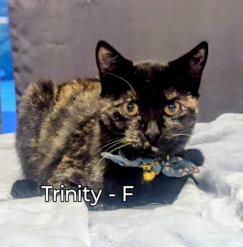 Trinity is a sweet tortie girl who is still getting the hang of the world. She's a calm girl who loves to lounge around and observe things going on around her. She enjoys to cuddle into your arms and take a nap. She will do amazing in a calm home with another cat that is confident. Trinity is still working on her own confidence but will surely strive in a home of her own. You won't regret adding Trinity to your family!
