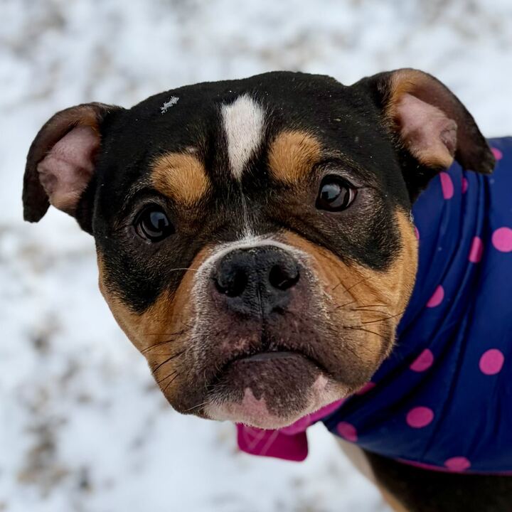 2 years old (estimated) Spayed female No known experience with other dogs, cats, or children Trixie is a goofy, affectionate girl who brings smiles wherever she goes. She walks nicely on leash, adores snacks, and loves curling up next to her favorite people. Trixie may not be a fan of the cold, but she rocks a cozy coat like a pro. Always wiggly, kiss-giving, and full of happiness, Trixie is ready to share her sweet personality with a lucky home. The online adoption listing websites require that we choose a predominant breed or breed mix for our dogs. Visual breed identification in dogs is unreliable so for most of the dogs we are only guessing at predominant breed or breed mix. We encourage you to select your new companion by considering each dog's individual personality and pet qualities instead of relying on a breed label that is only a guess.
