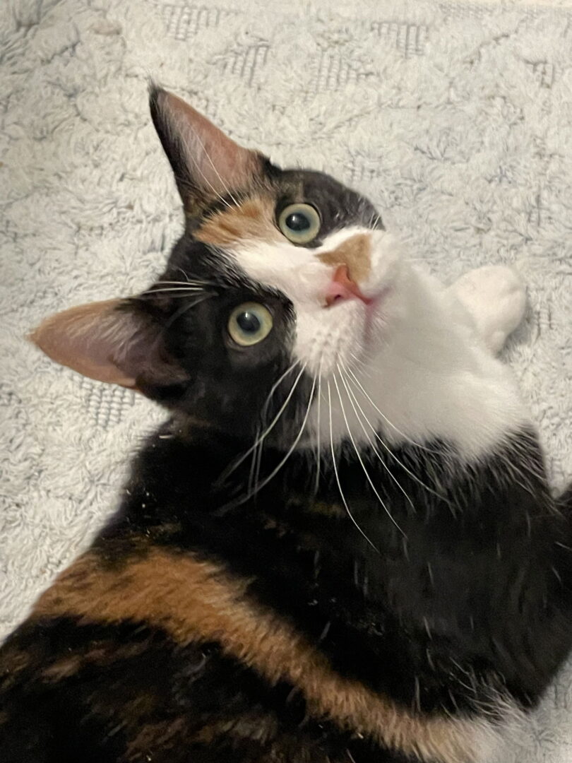 See Trixie’s HomepageGo to our official websiteYou can fill out an adoption application online on our official website. *This animal is located at our same-day adoption center partner, St. Louis Park PetSmart. Please contact this location prior to visiting to ensure this animal is still available. A paper adoption application will be completed on site so please do not submit an online adoption application. For more information on adopting from one of our adoption center partners, please visit our Adoption Center Animals page. Looking for a feline friend who’s as beautiful as she is sweet? Look no further than our darling Trixie! This exquisite calico kitty is a vision with her stunning patchwork coat and captivating eyes. Trixie isn't just a pretty face – she's an absolute dream. This young lady embodies the perfect balance: a quiet presence who loves a good cuddle session, followed by bursts of playful energy that will keep you entertained. And of course, she has just the right amount of sass to remind you she's a queen! Trixie blossomed in her previous home and is a true family cat. She's gentle and loving with children aged 5 and up, making her an ideal companion for a bustling household. She also gets along wonderfully with other cats, and we think she'd be thrilled to share her kingdom with a feline friend. While she hasn't had the pleasure of meeting a dog yet (she does voice her opinions about the neighbor's pup!), a slow introduction with a cat-savvy dog might work out, if you're up for the challenge! Trixie is ready to fill your home with purrs, cuddles, and a touch of calico charm. Could you be the lucky family to welcome this marvelous girl into your heart? Come meet Trixie today – your new best friend awaits! Trixie is from an owner surrender. To learn more about Ruff Start’s adoption process and the care our foster animals receive, please visit our How to Adopt page. If you are unable to adopt but want to help this animal and others in our care, you can donate to support the medical and veterinary needs of all Ruff Start Rescue animals. Want to adopt a kitten? We highly recommend you consider bringing home two instead of one! Adopting kittens in pairs has been proven to be beneficial for cats’ emotional and behavioral well-being and greatly improves the likelihood of long-term adopter happiness as a result. Adopting more than one kitten also reduces the risk of “Single Kitten Syndrome” (also known as Tarzan Syndrome), a symptom of under-socialization during a kitten’s most formative weeks. Kittens who are under-socialized may develop aggressive tendencies toward both other animals and humans as they grow, creating lifelong behavioral issues for owners.