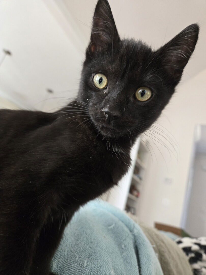 See Tulio’s HomepageGo to our official websiteYou can fill out an adoption application online on our official website.Tulio DOB: August 2025 (est) Neutered Male Short Hair Black Heyo! Tulio here! Are you looking for a new friend with some rambunctious kitten energy, a V8 purr, and lots of love to give? Today is your lucky day! I’m an active boy who loves to chase and wrestle with my foster siblings. I have a strong curious streak and am not afraid of anything. I would do best in a home where I have an adult cat who has the patience to show me how to grow up and be the best kitty ever! Now, I’m also a very affectionate baby, so I’ll need plenty of attention from my human family! I love to follow my foster mom everywhere, and when I’m worn out from playing, I love nothing more than to snuggle under the blanket on her lap. So, if you’re looking to add an impish little kitten to your family who has ambitions to grow up to be the Best Cat Ever, let’s get to know each other! Contact Best Friend Pet Adoption and let them know you want a play date with Tulio! Dogs: Must have kitty manners Other cats: Good with others, needs a friend Kids: Over 6 with kitty experience