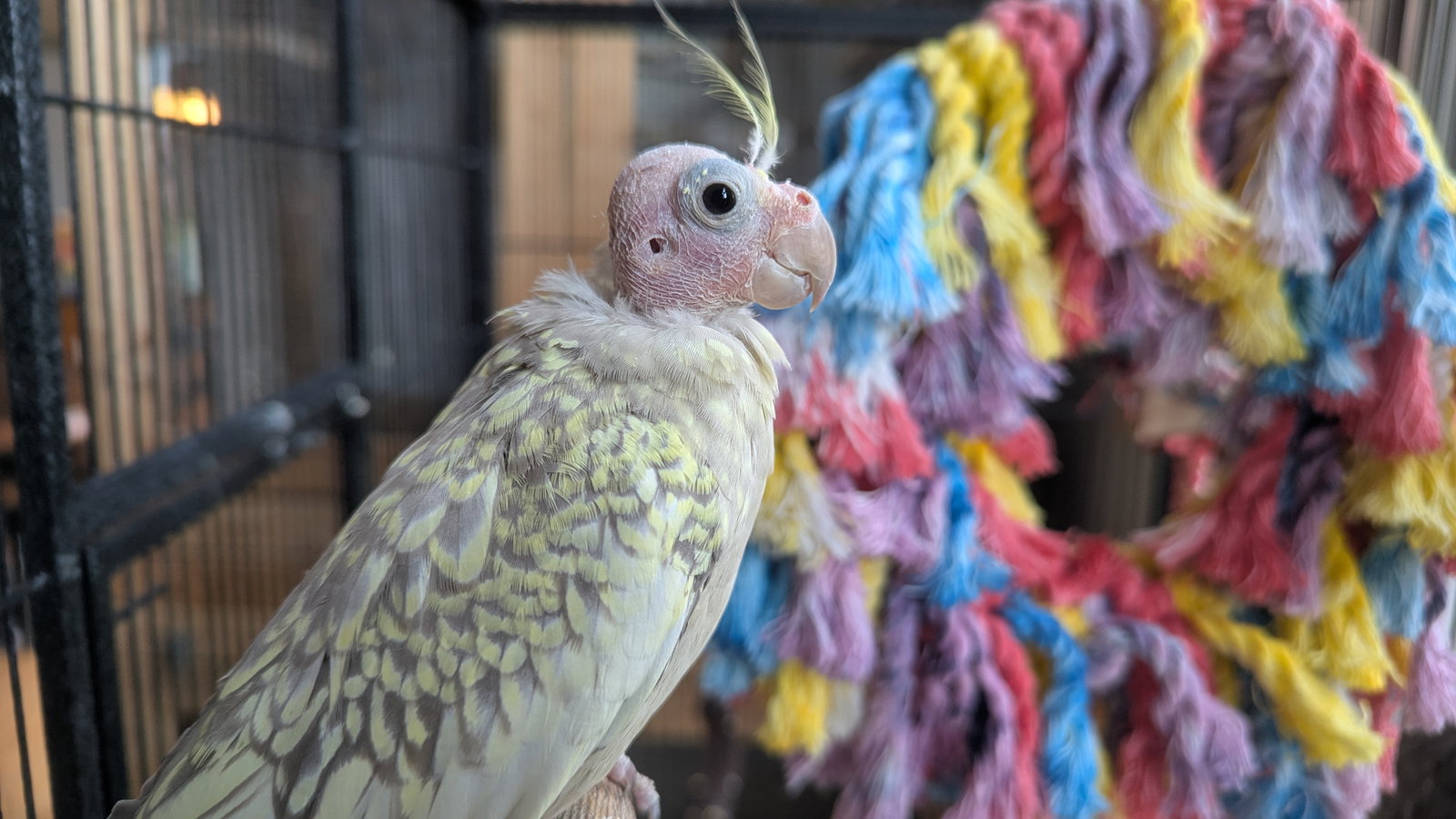 See Tweety and Sylvester’s HomepageGo to our official websiteYou can fill out an adoption application online on our official website.Tweety and Sylvester are older gentleman. They came into animal control with 4 other tiels, all are between 10 and 15 years old but we aren't sure on their exact age. Animal control stated they had a cage that was too small and not a proper diet but most of them have healed well although Tweety might never get a head of "hair" back. They are quite shy birds and do take some time to warm up to new people. They don't seem bothered by the dogs and cats, or kids in their foster home but they are not hand tamed and do get upset when you try to touch them. We separated everyone into pairs and Tweety and Sylvester do enjoy hanging together and will need to be adopted as a pair. They enjoy each other's company and would do best in a home where they can have a large spacious cage to stretch out in along with a high quality diet. They haven't wanted to explore out of their cage yet so someone who is looking for a sweet song but not really a cuddle buddy would be best for these senior boys. Their adoption fee is $100 for the pair To adopt Tweety and Sylvester fill out an application at www.kakf.org/forms