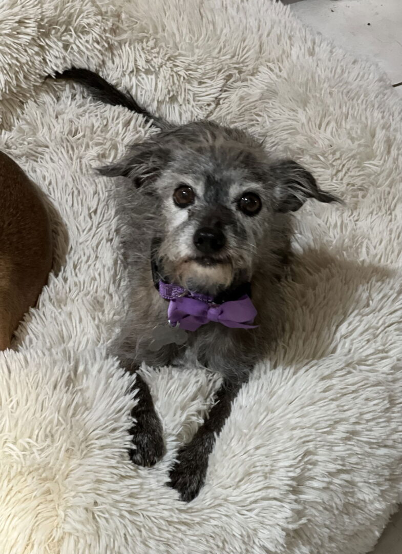 This adorable little lady is Umi! She is around 9 years old and just a sweet, loving, easy going girl. She is around 9 years old and a terrier/chi mix. She gets along with other dogs but would also be fine as an only dog. She is house trained, crate trained and walks well on a leash. Her adoption fee is $150 and she is spayed, vaccinated, microchipped and has had a recent dental. To meet her text 602-908-6215.