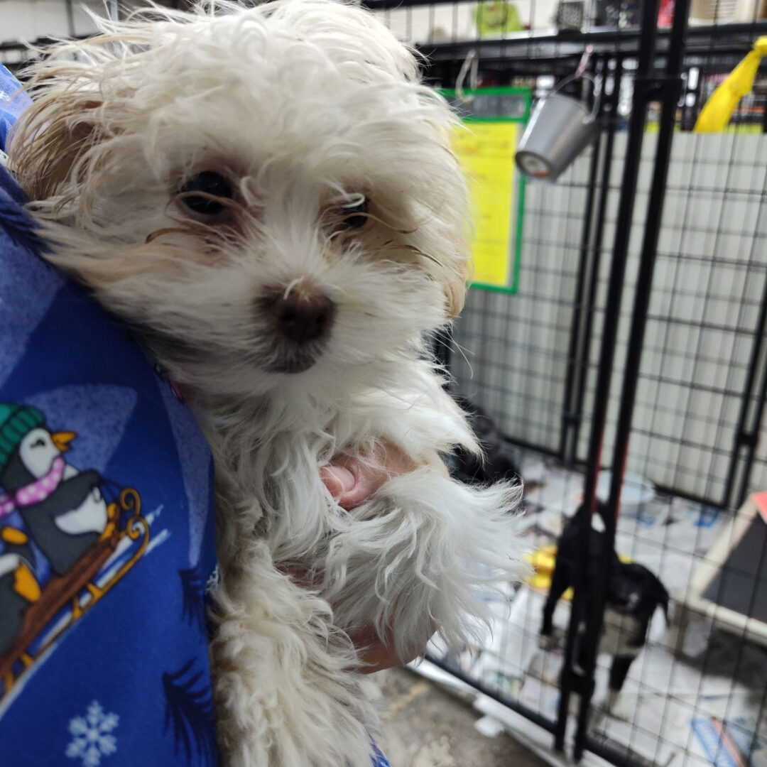 About Me: Name:Unique Breed (or best guess): teddy bear Approximate Age: 3 months Gender: female Approximate Weight:4 lbs Adoption Fee:$650 Requirements: patient adopter who has time to train a puppy Why In Rescue: breeder surrender Profile: Unique came from a commercial breeder/puppy farmer who was not able to sell him to a broker or pet store. She was released because at her first vet appointment a grade 2 heart murmur was heard, but none was heard by our vet. Some times heart murmurs are hard to hear on small dogs and sometimes small pups grow out of them. Dogs from commercial breeders are generally undersocialized (often very scared/shy/skittish) and probably never lived in a house. They will need to learn things like how to walk on a leash, go up stairs, and what things like a television are. They need a patient adopter who will give them the time they need to adjust and to learn to trust people. Every baby step forward needs to be celebrated, and the dog needs to be accepted for who they are at each step. Some dogs can adjust quickly and learn how to be a loved pet pretty easily. Others can take a long time to even be comfortable with things like walking through the house and being in the same room as a person. No matter how far and how fast the breeder dogs progress, they are wonderful dogs and deserve a great home after their life on the puppy farm. A fence or at least a secure fenced in potty area is highly recommended for the dog's safety, and may be required for some dogs. Another small dog in the house can also help many former breeders adjust faster to life in a home, and also may be required in some cases. We do put the needs of the dog's first, so it is nothing personal if we determine a particular dog isn't suitable for your specific home and living situation. If considering adopting a former breeding dog, the following article is good to read to help you understand the special needs these dogs may have. http://nowisconsinpuppymills.com/mill-survivors.html If interested in adoption, the first step is filling out the pre-adoption application at http://www.bichonrescues.com/pre-adoption-form-dog If link isn't clickable, please copy/paste or visit http://www.bichonrescues.com. Please note, filling out inquiry forms on Petfinder or Adoptapet and/or their application forms does not constitute an application for one of our dogs. Priority in responding to inquires and applications is always to the applications filled out on our website, time constraints limit the number of other inquires we can reply to. We do our best to evaluate the dogs while they are with us, but they sometimes act different in the shelter environment than they do in a home. Many times we do not know the actual breed/mix or age of the dog, in that case we use our best guess as to breed and age. We are located in Mukwonago, WI. Adopters must come to us, we do not ship our dogs. Please do not apply for a dog until you are ready to adopt. Once an application is approved you will be notified by email to make an appointment to meet the dog. All dogs are seen by appointment only. The adoption fee through Bichon and Little Buddies Rescue is $495 for most adults and up to $650 for puppies which includes Wi State Sales Tax. Included in this fee is your new companion who will be spayed/neutered, have a current Certificate of Veterinary Inspection (as required by state law), current on age appropriate vaccinations, heartworm tested (if old enough) and started on preventative, microchipped, and given a general wormer. Other medical needs will also have been taken care of, such as dentals and treating ear infections. To assist you and your new pet in adjusting to life together, you may chose to take an 8 week age appropriate obedience training course at For Pet's Sake Dog Training in Mukwonago, WI for $75 (up to $230 value). You may opt to take Puppy Kindergarten, Adult Beginners, or Small Dogs Big Hearts. You must register for the class within 90 days of adoption for the reduced fee. For more information on the classes visit www.forpetssake.cc More important information: ***We are a Wisconsin based rescue and do not ship our pets. If you are considering adoption you must be willing to drive to meet and adopt the pet, as well as bring the pet back to us if the adoption doesn't work. We adopt primarily in WI and IL, but will consider applicants in MN, IA, and MI.*** ***Please do not set up an appointment to meet the animals until you are ready to take your pet home. If the meeting results in a match, you can often take the dog/cat home the same day or within a couple days if the medical care hasn't been completed. We are not able to hold pets for adopters beyond this time. Thanks for understanding.*** ***While we hope all of our adoptions lead to permanent homes for the animals we place, sometimes things just don't work out. We do have a 30 day trial period. For the first 30 days, if you or Bichon and Little Buddies decide that the adoption isn't a good match for either the humans or the pet, the adoption fee will be refunded minus $75 within 30 days of the return of the dog. Bichon and Little Buddies also requires adopters to return the pet to us at any time that they are unable or unwilling to care for the animal anymore.*** ***We do not show dogs without an appointment. The first step in adoption is filling out the pre-adoption application at http://www.bichonrescues.com/pre-adoption-form-dog Please do not call/email until AFTER you have filled out an application.*** Bichon and Little Buddies is a State Licensed Rescue # 268555-DS