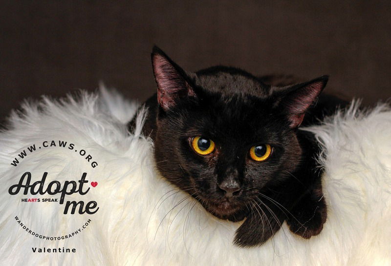 Valentine is a beautiful sleek black kitty with golden eyes that change to green at times. He is rambunctious and playful. He is loving and purrs and snuggles up against you. If you are interested in adopting a CAWS pet, please fill out an online application at https://caws.org/adoption-application