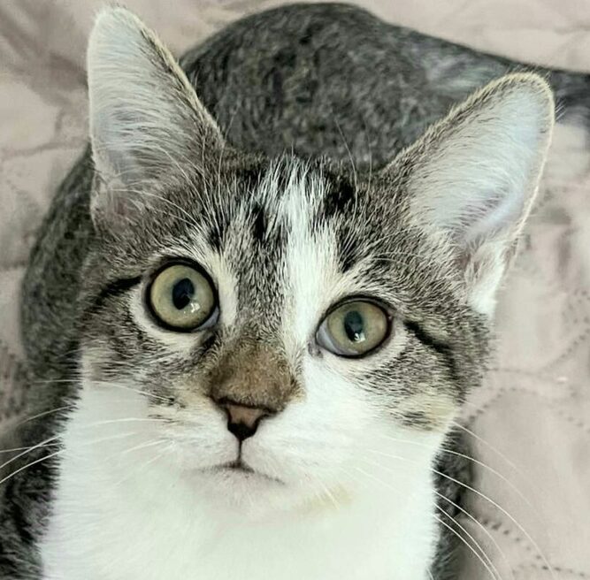 Valerie is a sweet, slightly reserved little girl who loves cuddling up to her people, lying on laps or chests and enjoying lots of petting time. She's curious and enjoys exploring her environment but does that very quietly and a little stealthily, too. Actually, when she first arrived at her foster dad's home she could be quite loud, especially when she'd walk on top of her crate instead of inside! In fact, if she had a superpower, it would be her Ninja-like movements! Valerie spends her days chasing her fellow foster cats, checking out birds and squirrels outside her window, playing with ping pong balls and string and playing 'peek-a-boo' with her foster dad! Valerie would do well in any type of household as long as her humans giving her time and space to adjust to her family and new environment. She tends to be a bit reserved at first. She loves children, and she would need to go to a home with a friendly young cat. Right now she's not a fan of dogs, but with a very slow, thoughtful introduction, she may do okay with a cat-friendly dog, If you're looking for a sweet and snuggly companion who also enjoys some playtime and bird watching, Valerie could be the 'purrfect' match for your home! Contact us to learn more about adopting lovely ValerieWE DO NOT HAVE A PHYSICAL LOCATION AS WE ARE A FOSTER-BASED ORGANIZATION. PLEASE SUBMIT AN APPLICATION TO BE IMMEDIATELY CONNECTED TO A SCREENER.Apply at online application (catsfff.org/adopt)View all of our adoptable cats here (catsfff.org/cats)Our adoption fees are listed here (catsfff.org/adoption-fees)