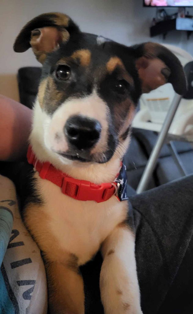 Valor is a mix of Border Collie/ German Shepherd/ Mutt! He was born Sept 13th.His parents are both about 50 lbs. He’s doing good in his foster home with the dogs and cats. He’s still learning about new people and places. He’s unsure of new people and needs continued socializing. His adoption donation is $300 which will include his neuter at 6 months of age.Go to sccpets.com and fill out the adoption application