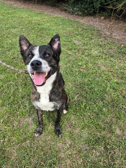 Vincent is approx 4-5 years old, weighs 45 lbs and a happy young boy searching for his forever home! He has a heart full of love. He gets along great with other dogs and absolutely lives for playtime.Vincent knows sit, shake, lay down, very treat motivated. He's a happy go lucky pup.. He is crate trained and doing well with his leash training. He's eager to please and would thrive with a family who can give him love, structure, and plenty of play. We're not sure how he does with cats, but his sweet nature suggests he just wants to be everyone's friend. He is currently in Houston, TX, but he can be transported to most states for a $300 fee.