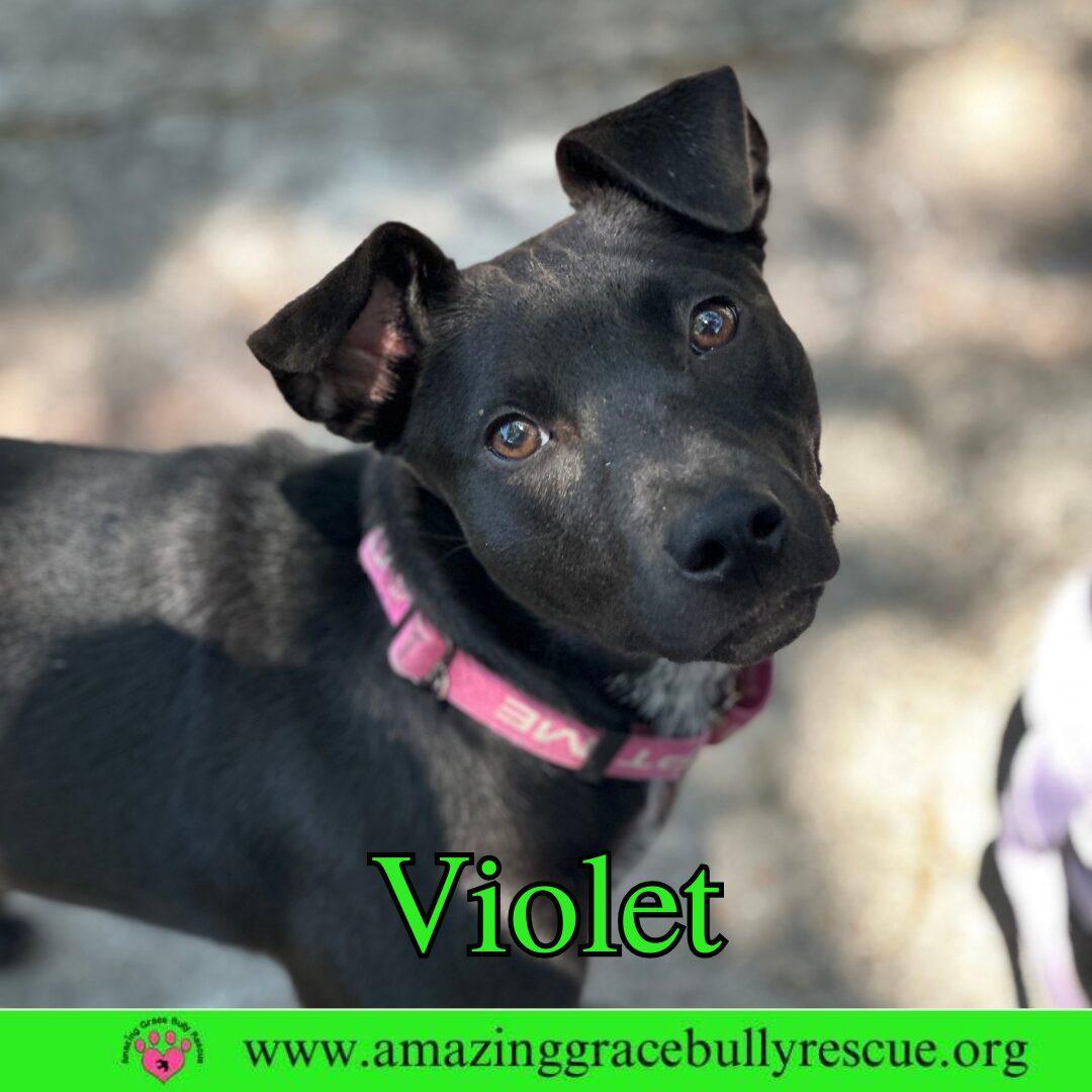 See Violet’s HomepageGo to our official websiteYou can fill out an adoption application online on our official website.Meet Violet. Violet is from a litter that was rescued from the Mobile Animal Shelter. She is one of 7 born on November 4, 2024. Violet is a super sweet girl currently in full puppy mode! She loves toys of all kinds and is go, go, go and then crashes for a nap! She is kennel-trained and mostly house-trained, but occasionally has an accident in her kennel; otherwise, she does very well. She is good with other dogs, but does bark when first meeting them; however, she warms up quickly. She is good with all people. She is an attention hog! She is also a good little snuggler! Since Violet will be a medium-sized dog, we recommend a home with a fenced-in backyard and a daily exercise and socialization plan. Amazing Grace Bully Rescue is a foster-based rescue in Pensacola, Florida. We do not have a physical building. If you would like to meet any of our pups, the first step is to complete our online application, which will enable us to contact you. Violet will have four sets of shots and two dewormings (done before adoption). She will be spayed when she is old enough and will have a registered microchip. If you would like to adopt this Amazing dog, please fill out our online adoption application at www.amazinggracebullyrescue.org If you have any questions, please text your question to 850-723-2037. You may also send a message to our Amazing Grace Bully Rescue Page on Facebook, Twitter, or Instagram or send an email directly to amazinggracebullyrescue@gmail.com Disclaimer: We are located in the Pensacola, Florida, area and will consider local applicants first, especially with the puppies, as we utilize a local veterinarian.