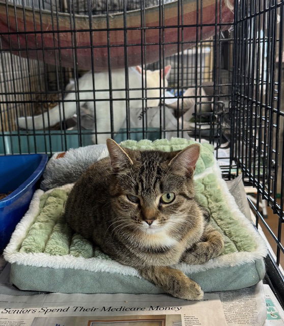 Violet came to the shelter pregnant and had three kittens. She is super sweet and would be a great addition to a family. If you are interested in meeting Violet, please visit our website kvckr.com and complete/submit an adoption application.