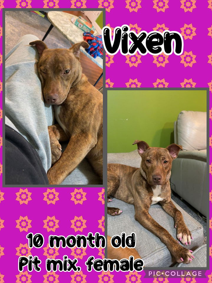 My adoption fee is $250 which covers my annual distemper booster, rabies, and being spayed/neutered and microchipped. She’s great with other dogs and great with kids (I have a 2, 5, & 6 yr old). She is a little less trusting of men; she got aggressive with my husband the other day for trying to go into her kennel to clean up a mess but otherwise has shown no other signs of aggression (i believe her heat got to her). We do not know about cats. She loves to snuggle, gets the zoomies here and there but otherwise would rather be laid up with you. We’re working on potty training, and so far, she’s gone 3 days accident free in the house. She’s a great dog overall.