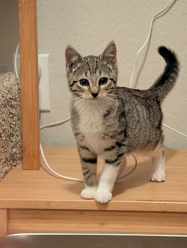 Meet Wanda – An Adorable Tabby With a Heart of Gold!Wanda is a sweet tabby with soft white socks and a snowy white belly, perfectly complementing her warm tabby stripes and long, elegant tail. Like her sister, Sabrina, Wanda is mellow and enjoys lounging in laps, getting plenty of love and attention from her family. Playful yet content to relax, she thrives in a home with other cats, dogs, and children. Wanda would make a perfect companion on her own, but she’d be even happier adopted alongside her sister, Sabrina, for twice the fun and affection!To inquire about adopting this cat please complete an adoption application at tinyurl.com/ccapadoptions All fosters under the San Antonio Feral Cat Coalition: Community Cat Adoption Program are fostered privately through foster homes. They are spayed/neutered, given age appropriate vaccinations, and microchipped before adoptions are finalized. SAFCC is a 501c3 non profit, all volunteer organization serving San Antonio and Bexar County, Texas. Visit sanantonioferalcats.org for more information or email adoptions@sanantonioferalcats.org for information on adopting.