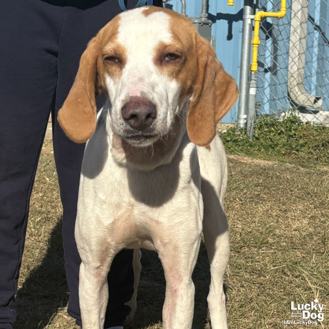 sweet older gent seeking happily ever after! WARREN NEEDS A FOSTER OR FOREVER HOME!!!! Name: Warren Best Guess for Breed: Hound mix, likely with foxhound Best Guess for Age: 8 years as of October 2024 Gender: 50 lbs Approximate Weight: 50 lbs Gets Along With: Other dogs! We haven’t seen him with kids or cats but he can be tested. Currently Living At: Lucky Dog’s South Carolina rescue campus; needs a foster or forever home in the DC area to escape after completing heartworm treatment. Special Adoption Considerations: Warren is heartworm positive, but this Lucky Dog got extra lucky! This pup is part of a groundbreaking study we are conducting at our South Carolina Rescue Campus that has the potential to change the way shelters across the United States treat heartworm positive dogs. All dogs in the study are placed at random in either the 2 shot or 3 shot protocol with strictly monitored protocols in place. Four weeks following their final injection, the pups are eligible to transport to the DC area for placement in foster or adoptive care. After treatment concludes, we work with adopters to arrange a free follow up heartworm test after 6 months, followed by a second test at 9 months. We are happy to discuss this treatment and which phase of the study this Lucky Dog is in right now! Just email the adoption coordinator – the address is at lower left! Warren is Looking For: His forever home! He ended up in the shelter through no fault of his own but has closed that chapter and is eagerly looking ahead to his new one. The one where he gets All. The. Smells. This boy might be 8 but his heart is young and his sniffer is strong. Lots of long sniffy walks, romps, and all the adventures his humans can dream up – he’s up for it all! Most of all, though, he wants to be safe and loved and under his own roof. Look at those awwww-inducing eyes. Can you see yourself waking up to that face every day for many days to come? Can you see Warren trotting by your side? What My Foster Says About Me: We will update this once he has arrived in the DC area and spent some time with his foster Lucky Dog cannot guarantee any dog is housebroken. All of our dogs are working on their crate training. TO ADOPT: The adoption fee for this dog is $475, which includes the cost of routine vetting, including vaccinations, spay/neuter, and heartworm treatment. If you are interested in adopting, please complete the Adoption Questionnaire online at bit.ly/adoptaluckydog Lucky Dog Animal Rescue does our best to provide accurate information about the dogs we have for adoption. That said, we cannot make any guarantees about age, breed or temperament. Thank you for contacting Lucky Dog Animal Rescue and helping to save a life! Please visit us online at www.luckydoganimalrescue.org. BE A FOSTER!!! Fosters make it possible for Lucky Dog Animal Rescue to save and care for homeless and abandoned dogs! To learn about fostering, please contact fostering@luckydoganimalrescue.org! BE A SPONSOR!!!! Sponsors help Lucky Dog support the many dogs we save. To learn more about sponsorship, please contact info@luckydoganimalrescue.org.