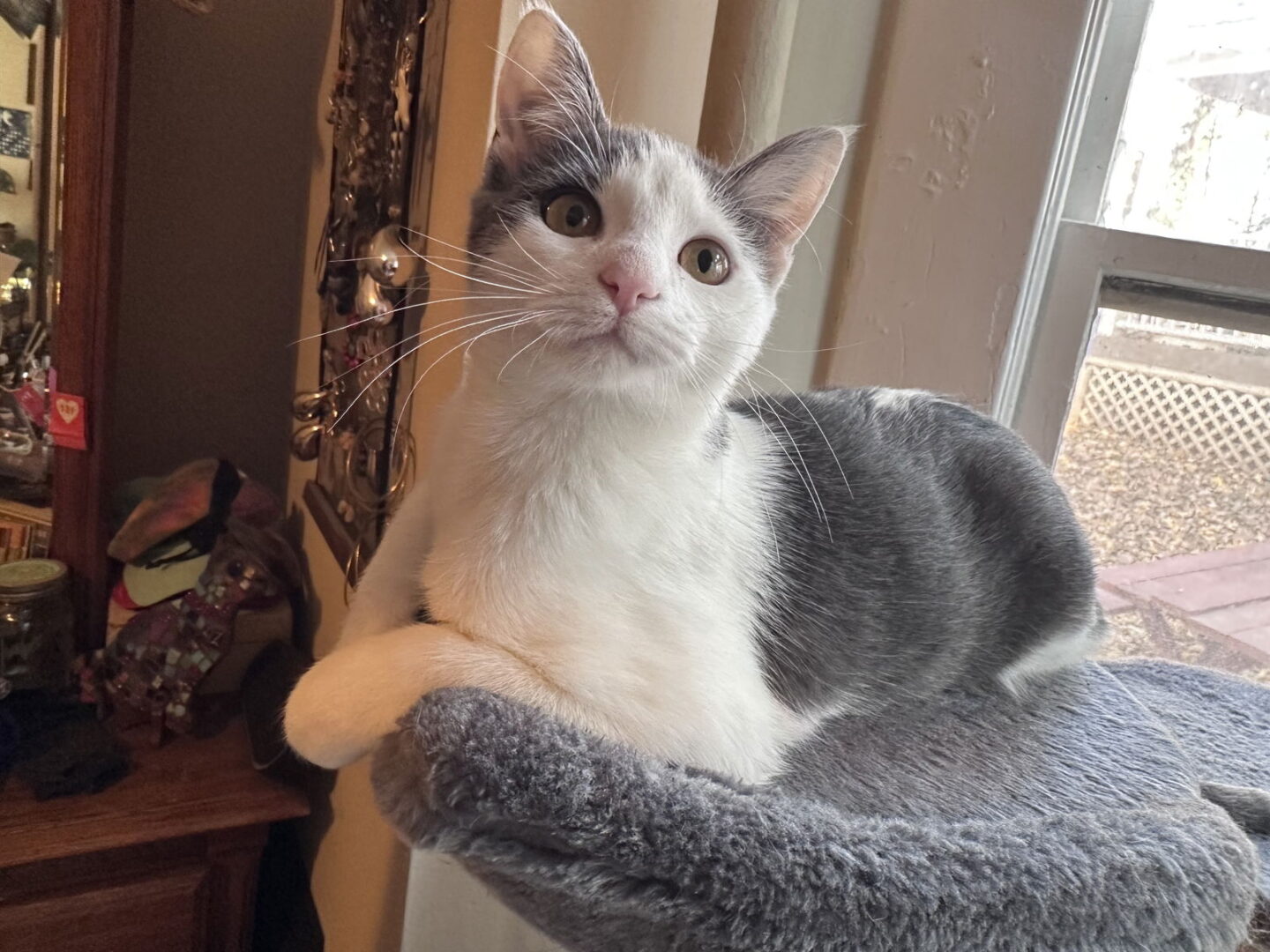 See Whiskers’s HomepageGo to our official websiteYou can fill out an adoption application online on our official website. Thank you for stopping by to see me! Please fill out an application to set up a private meeting. Keep checking back for upcoming events I will be attending! Hi there! I’m Whiskers! At just 6 months old and 4 pounds, I may be tiny, but I’ve got a huge personality! I’m a friendly, social kitten who warms up to new people and spaces in no time. As soon as I arrived at my foster home, I made myself right at home—eating, playing, snuggling, and napping like I’ve always been part of the family. I even made fast friends with the resident cat! Dogs, though? Meh, they’re fine if they stay out of my bubble. I’m a playful little adventurer, and my favorite toys are tiny mouse toys and the laser pointer. I also love to pounce on hands and feet under blankets—it’s like my own little game of hide-and-seek! But I’m not all about play. I adore cuddles, and I’ll happily curl up in your lap or let you pick me up for some cozy snuggles. I’m 100% litter-box trained, respectful of other cats, and I’ve been on my best behavior—no climbing on counters or tables for me! While I’m great at entertaining myself or hanging out with my kitty friends, I’m always ready to cuddle or play whenever you are. I’m a chatty little thing when I’m hungry or curious, so you’ll always know what’s on my mind. I’d thrive in a home with another cat to keep me company, but I’d also do well as your one-and-only, as long as you’re ready for plenty of love and fun. I’m everything you could want in a kitten: sweet, playful, and ready to be your new best friend. Are you ready to welcome me home? Please note that this is a strictly indoor cat. This kitten may may require a home with another kitten as kittens are family oriented and do best when adopted in littermate pairs. Please fill out a Feline application here: https://underdogrescuemn.com/adoption-applications/feline-adoption-application/ If you have other questions about me you can email Underdog Rescue at <inquiries@underdogrescuemn.com> ADOPTION EVENTS: Adoption events are updated at the top of each dogs animals' as their foster home signs up. Check back for updates on which events they will be attending. If an event is not listed within their bio above, the animal is not planning to attend. Please understand that all of our pets are in volunteer foster homes and sometimes "life" happens and the foster family cannot make it to their scheduled adoption event. If you are traveling from a far distance to meet a specific animal, please understand we cannot guarantee event attendance. We recommend filling out an application and we will set up a private appointment. Private appointments are only scheduled after an application is submitted and approved. ADOPTION PROCEDURE: The first step in our process is to complete an online adoption application on our website: http://www.underdogrescuemn.com/adoptionprocess/ Note: In most circumstances Underdog Rescue will only adopt within 60 miles of Minneapolis, MN. All of our foster animals can be seen by appointment with an approved adoption application. Contact us at http://www.underdogrescuemn.com/contact-us/ if you have further questions. FOSTER CARE: All of our animals are fostered in individual homes or doggie daycare facilities. While they are in our care, they are part of our families and given lots of love. We work on training, crate-training and socialization prior to adoption, but each bio is written by the foster as they see them, in their home. Each animal's behavior is evaluated and we have a sense of its temperament and personality, but it cannot be guaranteed. We look for adopters who will give each animal the wonderful life and permanent home that he or she deserves in time and with patience. If you have an interest and ability to be a foster home, please visit our website www.underdogrescuemn.com/foster-applications and fill out a foster application. NUTRITION: Nutrition is vital to the rehabilitation and life-long health of our pets. All of our foster animals are fed a premium diet such as NutriSource, Canidae, Orijen, Nature's Variety, Fromm, Pure Vita, Stella and Chewy's, Primal, or balanced raw diet. All adopters are required to continue providing premium diets for the life of the animal. YOU CAN HELP: Not able to foster or adopt right now? Please consider sponsoring an Underdog. Your donation will help us buy dog food and pay for medical costs. Visit this link www.underdogrescuemn.com/donate to donate. (Please note: A Paypal account is not necessary to use Paypal. When you get to the Paypal page, just use the link to the left of their login to make your donation via Paypal without an account.)