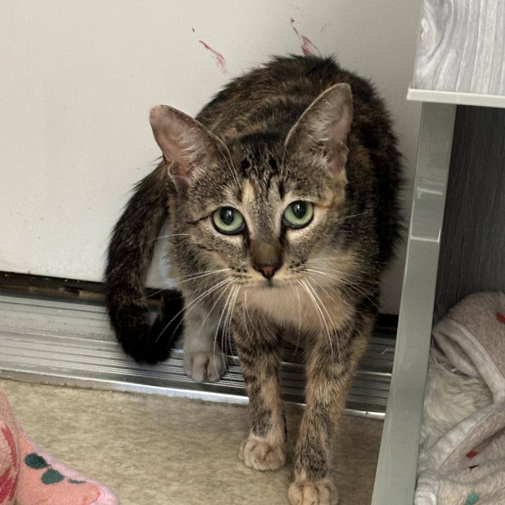 Willow is a young momma cat with a heart full of sweetness, even if she's a bit shy around people. Though she may be a little reserved at first, her gentle and loving temperament shines through once she feels safe. Willow's quiet demeanor hides a deep affection for those she trusts, and with patience and a soft touch, she'll reveal her tender, caring nature. She's the perfect companion for someone who appreciates a cat with a calm, nurturing spirit and the promise of a close bond once trust is established.