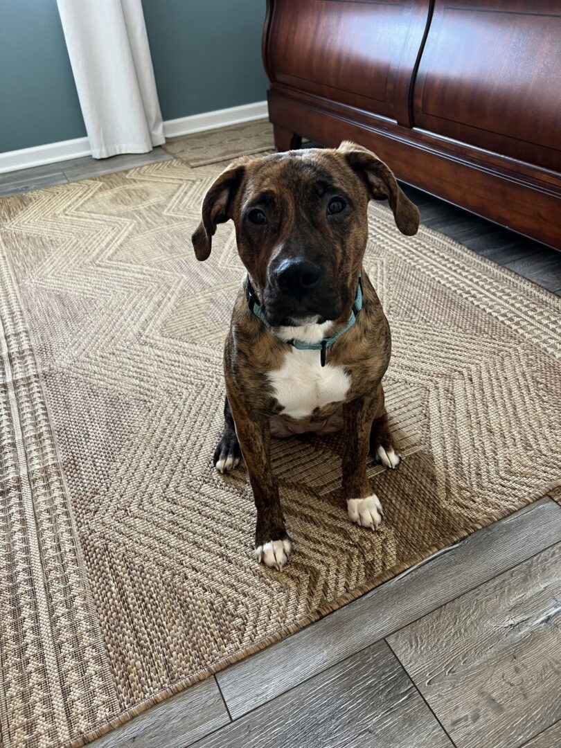 See Willow D6156’s HomepageGo to our official websiteYou can fill out an adoption application online on our official website. This beautiful brindle pit mix girl is the perfect blend of fun and laid-back. Willow enjoys playful moments, but her true happy place is stretched out on the couch, soaking up time with her people and her doggy crew. She’s very social in a thoughtful way—she does great with other dogs in the home, respectfully giving senior dogs their space and gently playing with younger ones. Willow is kennel trained, spending time resting there while her humans are at work and sometimes during the night, although to be honest, she’d much rather curl up on the bed with the rest of her pack. She’s very food motivated and truly aims to please, which makes her a great candidate for continued training. When her foster family gets home, Willow is thrilled to see them and may show her excitement with a little extra wiggle and enthusiasm—she’s currently working on calm greetings, and a quick sprint around the back yard and some human interaction are all she needs to settle down. Because of her excitement she has potential to knock very small children over. Willow still has occasional accidents but is figuring out what it means to live in a home and is getting the routine down. Her adopters should be patient while she continues to develop her house training skills. If you’re looking for a sweet, affectionate dog who can happily coexist with other pups and still be your dedicated couch companion, this brindle beauty could be your perfect match. Interested in adopting this lovable animal? Please go to our website www.wagsmn.org and fill out an Adoption Application. Once the application is processed, a Wags representative will contact you, answer any questions you may have, and set up a time/location for a meet and greet! A home visit is required prior to adoption. Thank you for choosing to adopt! Breed and temperament determination: Wags & Whiskers Animal Rescue attempts to determine breed and temperament using a combination of looks, information provided to us at intake, and our experience with the animal while in our Rescue. We do not guarantee this determination.