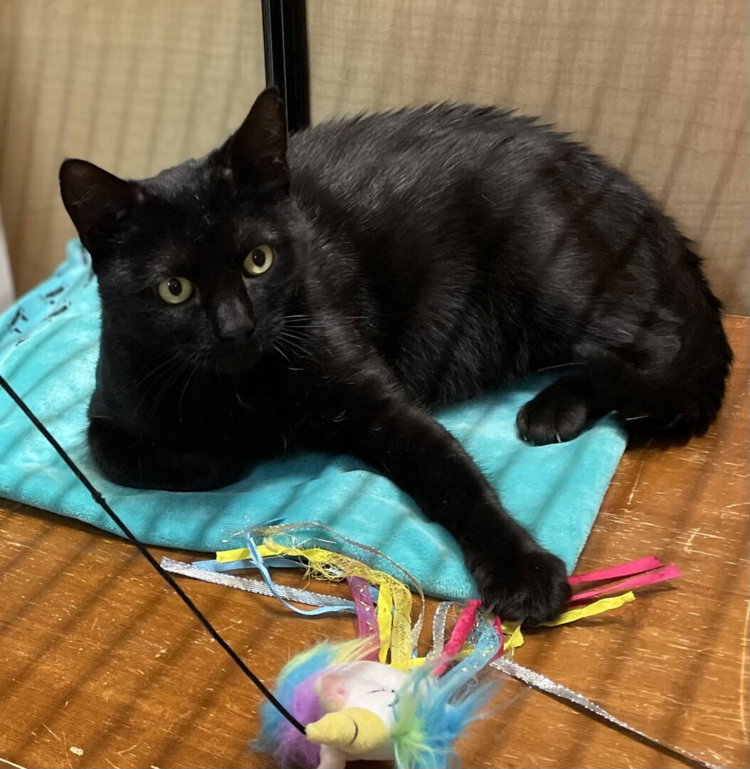 Just me, please!! Meet Willow, the Friendly Feline Fashionista of Forgotten Cats Cat Rescue! Willow is a sleek black cat with a heart of gold and a penchant for greeting you with a cheerful ‘hi’ whenever you approach. Despite her battle with a stuffy nose, Willow’s affectionate nature shines through as she eagerly rubs against you with her sleek, shiny coat. But wait, there’s more! Initially quiet and observant, Willow enjoys taking in her surroundings from afar, quietly assessing her new environment before warming up to her human friends. Looking to add a touch of elegance and quiet companionship to your home? Willow would make the perfect addition, bringing not only her beauty but also her sweet and gentle demeanor to brighten your days. Apply to adopt Willow today and discover the joy of having this loving and graceful cat by your side! Willow is about 2-4 years old and is a very people-friendly girl, and she would love to be in an otherwise cat-free home environment. Please submit our no-obligation Adoption Application: https://forgottencats.org/adoption-application/. Thank you! (Foster: Trainer)