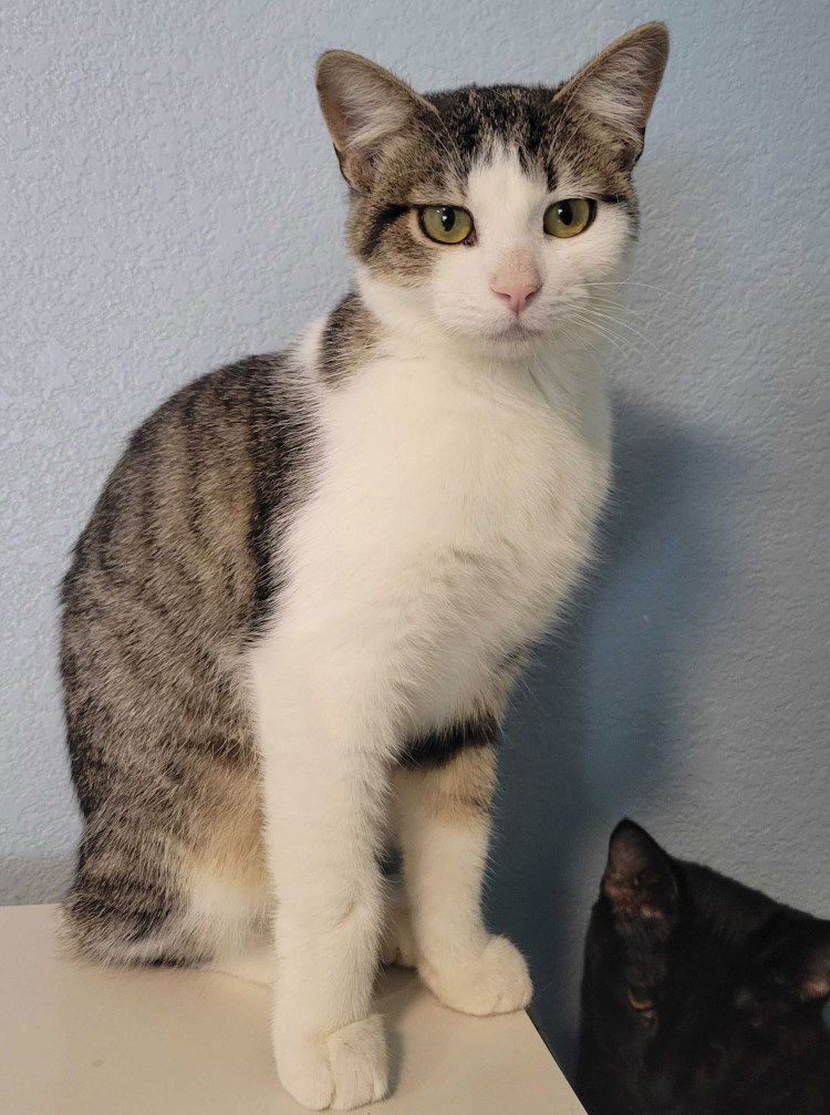 Hello! My name is Windermere! I'm a female short haired brown tabby and white kitty with an estimated DOB of 5/20/24. I was born to a feral mama on a cottage farm near Canon City, CO. Wild Blue Cats provided me a loving foster home where I grew in my learning about human love. I've been handled since coming into Wild Blue Cats and am well socialized thanks to my foster parents. I have what my foster mom calls "resting angry face" but don't let that fool you. I'm a bit shy, but once I get to know you, I am a quiet and sweet kitty who loves lots of petting. I may not reach out to you asking for attention, but I love it when you spend time with me. It takes a little bit of time to get used to being held but if you move slow, I'll purr and snuggle. I'm learning how to play with toys, and things with movement perk my interest (like wand toys). Slow movement is best when I am first meeting new human friends, and starting me in a small space without hiding spots will help me feel comfortable faster in my surroundings. I was a colony kitty so I would do best with a gentle friend to go home with or if you have another peaceful cat already at home. Even though I have been around other kitties, I will need time to adjust. I have not had any contact with dogs or young children, so for now I'd rather skip those options in my new home. I am ok with older teens who are gentle, patient and loving with me as I blossom. Introductions with any other pets should follow WBCats instructions and be slow and gradual. My ideal home is calm and steady. I am up to date on my vaccinations, tested negative for FIV/FELV. I have had my vet exam, been dewormed, and been microchipped and spayed. Please note: kittens may NOT be adopted as a Barn Cat nor be outdoors unsupervised as they are too young to know how to protect themselves.