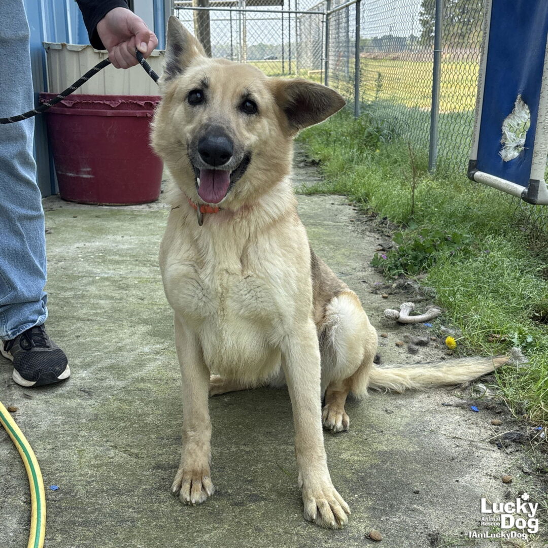 Please contact Kady Hammer (KadyH@luckydoganimalrescue.org) for more information about this pet.young girl eager for fresh start and love! WINN DIXIE NEEDS A FOSTER OR FOREVER HOME!!!! Name: Winn Dixie Best Guess for Breed: German shepherd mix Best Guess for Age: 2 years as of March 2026 SEX: female Approximate Weight: 51lbs Gets Along With: Other dogs! We haven’t seen them with cats or kids but we are happy to discuss integration techniques with any potential adopters! Currently Living at: SC Rescue Campus Special adoption considerations: Winn Dixie is a truly Lucky Dog. She tested positive for heartworms, but landed in a place where heartworm treatment is provided! Heartworm is not contagious to people or other pets, but results from mosquito bites. Heartworm, if left untreated, is life threatening, but after treatment, dogs that were heartworm positive should suffer no significant long-term effects so long as they are kept on a monthly heartworm preventative. Heartworm dogs can resume full active and normal lives, but need to be kept calm for 4-6 weeks after treatment. Winn Dixie is Looking For: Her forever home! This pretty girl is out of puppyhood and has got all that awesome young-dog energy. She is eager for romps and all the adventures her new humans can dream up. Making pup pals along the way would be great. Quality kibble and a cushy dog bed – yes, those too! But you know what she wants most of all? To know where she belongs, to be safe and loved. Winn Dixie has so much to give to her humans – adoring gazes, love, and loyal companionship for all her days. What do you say? Can you see her trotting by your side? What My Foster Says About Me: Coming soon! Lucky Dog cannot guarantee any dog is housebroken. All of our dogs are working on their crate training. TO ADOPT: The adoption fee for this dog is $475, which includes the cost of routine vetting, including vaccinations, spay/neuter, and heartworm treatment. If you are interested in adopting, please complete the Adoption Questionnaire online at bit.ly/adoptaluckydog . Lucky Dog Animal Rescue does our best to provide accurate information about the dogs we have for adoption. That said, we cannot make any guarantees about age, breed or temperament. Thank you for contacting Lucky Dog Animal Rescue and helping to save a life! Please visit us online at www.luckydoganimalrescue.org . BE A FOSTER!!! Fosters make it possible for Lucky Dog Animal Rescue to save and care for homeless and abandoned dogs! To learn about fostering, please contact fostering@luckydoganimalrescue.org! BE A SPONSOR!!!! Sponsors help Lucky Dog support the many dogs we save. To learn more about sponsorship, please contact info@luckydoganimalrescue.org !