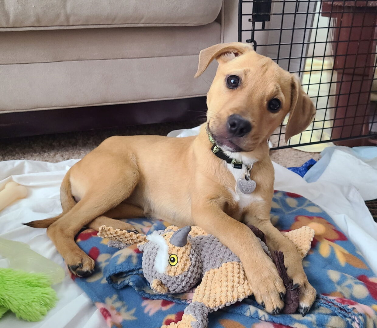 See Wu Litter Eris’s HomepageGo to our official websiteYou can fill out an adoption application online on our official website.If interested in any of our animals for adoption, or to foster an animal, please fill out the respective application here to get the process started. Visit our FAQ webpage for commonly asked questions about our adoption/foster process. ​ Eris and her siblings were part of an unplanned litter in Detroit. We were told their mom is a Rottweiler mix (not seeing this at all in the pups) and dad was an unknown stray. While ‘Detroit Special’ isn’t a breed we can select for their profiles, that’s what these pups are. Your breed mix guess is as good as ours! Based on current size, estimated age, and paw size, the vet estimates Eris will grow to be 20-25 pounds as an adult. These pups came to us very skinny and under-socialized. They are looking a lot better after getting regular meals – they LOVE their food. New people, places, and things are all a bit scary. They do warm up as they feel more comfortable, but adopters will need to continue to work to socialize their pup to build confidence and trust. Despite their rough start to life, these pups are very sweet and loving! Eris is a good mix of playful and cuddly. She likes to play with rope toys and to chase/wrestle with her littermates. She also likes to sniff out any kibble or treats that may be around — a snuffle mat or puzzle toy would be a good investment for her future family! Last Day Dog Rescue now microchips all animals before adoption. Microchips are implanted between the animals shoulder blades and are a permanent form of identification. The microchips are registered to Last Day Dog Rescue with the adopter's info added once adopted. If the animal is ever lost and slips his/her collar/tags the microchip allows the finder to know who to contact if scanned for a microchip. Animals MUST still have a collar with tags on at all times. Per our contract, we take all our animals back if for any reason you can't keep your adopted animal. Please understand the statements about this animal are based upon the foster home's evaluation of the animal. The animal might behave differently (negatively or positively) in your home. While the animal might be good with the current foster’s dogs, cats, children, etc., it may not be with your animal(s) or children. The animal may be housebroken or litter trained in the home of the foster but may relapse in your home. The animal is represented to the public as it performs in the foster home and any statements made regarding the animal are conditional to that foster home setting. Please understand that statements made regarding this animal are simply overviews and are not guaranteed. The Petfinder.com system requires that we choose a predominant breed or breed mix for our animals. Visual breed identification in animals is unreliable so for most of the animals we are only guessing at predominant breed or breed mix. We get to know each animal as an individual and will do our best to describe each of our animals based on personality, not by breed label. Thank you for looking through our list of animals needing forever homes and choosing rescue first. We appreciate you stopping by.