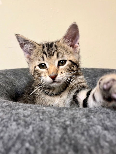 Wyatt and his four littermates are just over two months old and ready to go! Wyatt is the most outgoing of the bunch and will play anytime, anywhere, with anyone- he has made friends with all the other kittens in our kitten room! This sweet little boy would be a great addition to any family! If you would like to meet me, please visit our website and complete the pre-adoption application. Once it has been processed then we can make a date to get together! All cats are spayed/neutered (deposit required if too young), vaccinated, dewormed, flea and tick treated, microchipped and more before adoption. Our adoption policies include: Application, Vet reference, Landlord approval & Criminal Background Check. HSBC has a policy of not declawing, which is included on our Adoption Contract. We do not do same day adoptions. We request that you call for an appointment after your application has been approved to come and visit the cat of your choice. Please visit our website for additional information. The online application can be found at: https://hsburnettcty.org/adoption-application/