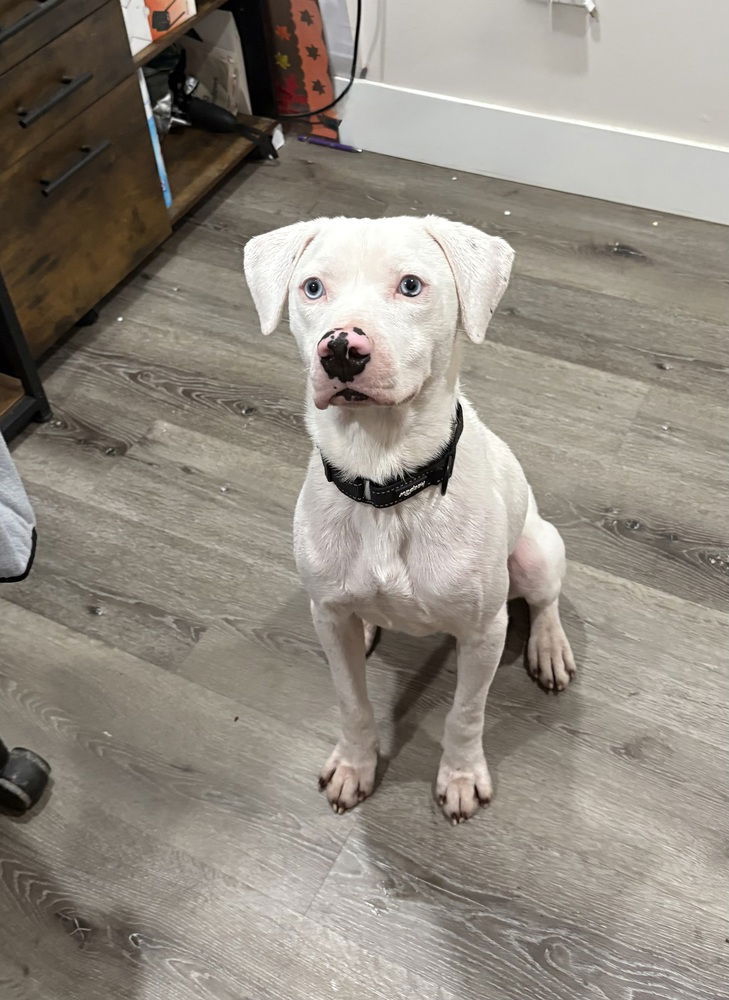 *Name: Wyatt*Age: 1.5 years old*Current Weight: 39lbs*Rescued from: Louisiana, fostered in NY*Adoption fee: $475 Introducing Wyatt! Wyatt was rescued from a rural shelter in Louisiana after a rough start to life. He arrived underweight with visible skin irritation, but even then, his happy, resilient personality stood out. Now in foster care in New York, Wyatt is steadily gaining weight, his skin is improving with diet changes and care, and his true personality continues to shine.Wyatt is a pittie hound mix with striking blue eyes and a bright, expressive face. While his paperwork lists him at approximately 1.5 years old, Wyatt has a very puppy-like demeanor with youthful energy, curiosity, and playfulness. He is very much in his “young dog” phase and will thrive with continued structure, training, and enrichment.Wyatt is an energetic, social dog who loves chew toys, outdoor time, and running around with his dog friends. He is very dog social and truly thrives when he has another friendly, playful dog in the home. Because of this, we are seeking a home with a canine companion who can be his playmate and help meet his social and enrichment needs. Wyatt is wonderful with children, though his youthful enthusiasm means he can be jumpy at times. He is still learning basic commands, and his foster family is working closely with him to build good manners and foundational training.Wyatt’s hound side adds curiosity, humor, and personality to his day-to-day life. He enjoys exploring with his nose, taking in new environments, and expressing himself vocally when excited or engaged. He is an interactive, engaging dog who enjoys being part of the action and included in daily routines.Wyatt is not good with cats and requires a cat-free home.When his energy is spent, Wyatt is happy to relax and has discovered that couches and beds are excellent places to unwind. He is still healing from his past, but he has already proven himself to be a resilient, joyful dog who continues to blossom in foster care.Wyatt’s ideal home will have another dog, provide plenty of exercise and mental enrichment, and be excited to help a young, playful dog continue growing into his best self.To apply to adopt, fill out an application at https://snarrnortheast.org/adopt/PLEASE CLICK HERE FOR FAQs