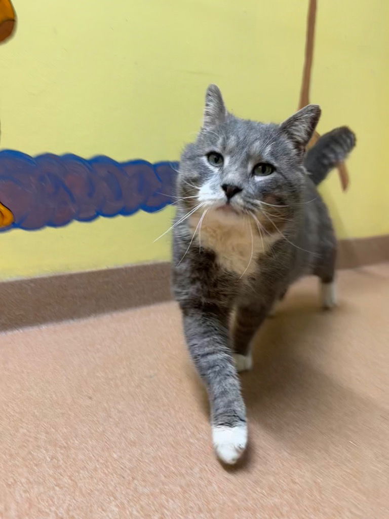 See Wysocki’s HomepageGo to our official websiteYou can fill out an adoption application online on our official website. Wysocki is a handsome grey and white cat with green eyes. He weighs in at 14 pounds, making him one of the largest cats at the rescue. He has a sweet temperament and is happy to be held. Sometimes, though, his curiosity gets the better of him, and he won’t stay in your arms for long. Wysocki enjoys exploring his surroundings and is always on the lookout for something new to investigate. If you’re looking for a big, affectionate companion with a sense of adventure, Wysocki might be the perfect match. If you’re interested in adopting him, please fill out an application.
