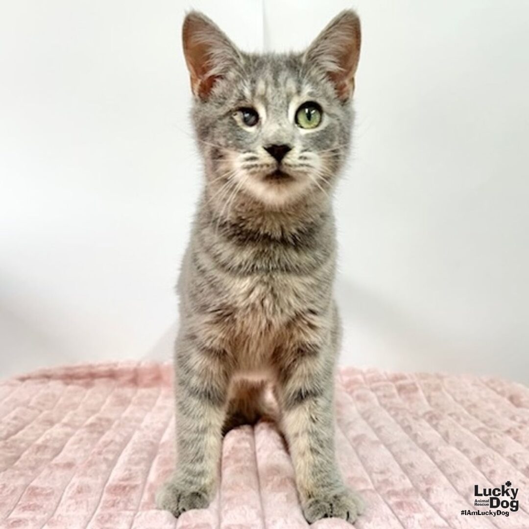 Please contact Lauren McCarty (laurenmc@luckydoganimalrescue.org) for more information about this pet.Sweet kitten needs a forever home!YANNI NEEDS A FOREVER HOME! Name: Yanni Best Guess for Breed: Domestic Short Hair Age: 4 months as of 12/6/25 Est. DOB: 7/21/25 SEX: Female Weight: 4.98 lbs as of 12/8/25 Coloring: Gray Tabby Type of Hair: Short Gets Along With: Because of her young age, Yanni will likely get along with other cats, dogs and kids with an acclimation period. We’re happy to help with tips and tricks! Currently Living at: Shelter – coming to the DC area soon! I am Looking For: My loving forever family! Hi! I’m Yanni, and I am a cute little kitten! I won’t ask for much- just some love, cuddles and lots of toys so I can run and play and be my kitten self. Two kittens are better than one – consider adopting one of my super cute siblings too! Litter: Yam, Yanni, Yolanda What the Shelter Says About Me: Yanni sees the world a bit differently as she was born with one eye smaller than the other. Before her time with us, she must have acquired several infections that may have created even further damage. However, this does not stop her from becoming the most independent, loving and appreciative kitten that you could have imagined!! Yanni – the ultimate social butterfly, the first one to jump up and greet a volunteer, the one who gazes into your eyes with her eyes – exudes supreme confidence and grace. She will fall all over you for affection! Be ready for her to make your day! She’s content and capable with her vision. Her gray tabby coat is soft and thick – she is a cute personality in a gorgeous feline. So far Yanni hasn’t found anything she doesn’t like (except yucky medicine). Sweet girl hopes that she can soon share her perspective on life with someone who she will love forever. What my Foster Says About Me: Coming soon! Kitten Vetting Requirements: Your kitten may not be fully vaccinated upon adoption. You will be responsible for providing whatever remaining vaccines are needed to complete the kitten vaccine series. TO ADOPT: The adoption fee for adult cats is $200 ($350 for two cats adopted together). The adoption fee for a kitten (under 7 months old) is $220 ($380 for two kittens adopted together).If you are interested in adopting, please complete the Adoption Questionnaire online at bit.ly/adoptaluckycat. Lucky Dog Animal Rescue does our best to provide accurate information about the cats we have for adoption. That said, we cannot make any guarantees about age, breed or temperament. Thank you for contacting Lucky Dog Animal Rescue and helping to save a life! Please visit us online at www.luckydoganimalrescue.org . BE A FOSTER!!! Fosters make it possible for Lucky Dog Animal Rescue to save and care for homeless and abandoned dogs! To learn about fostering, please contact fostering@luckydoganimalrescue.org BE A SPONSOR!!!! Sponsors help Lucky Dog support the many dogs we save. To learn more about sponsorship, please contact info@luckydoganimalrescue.org !