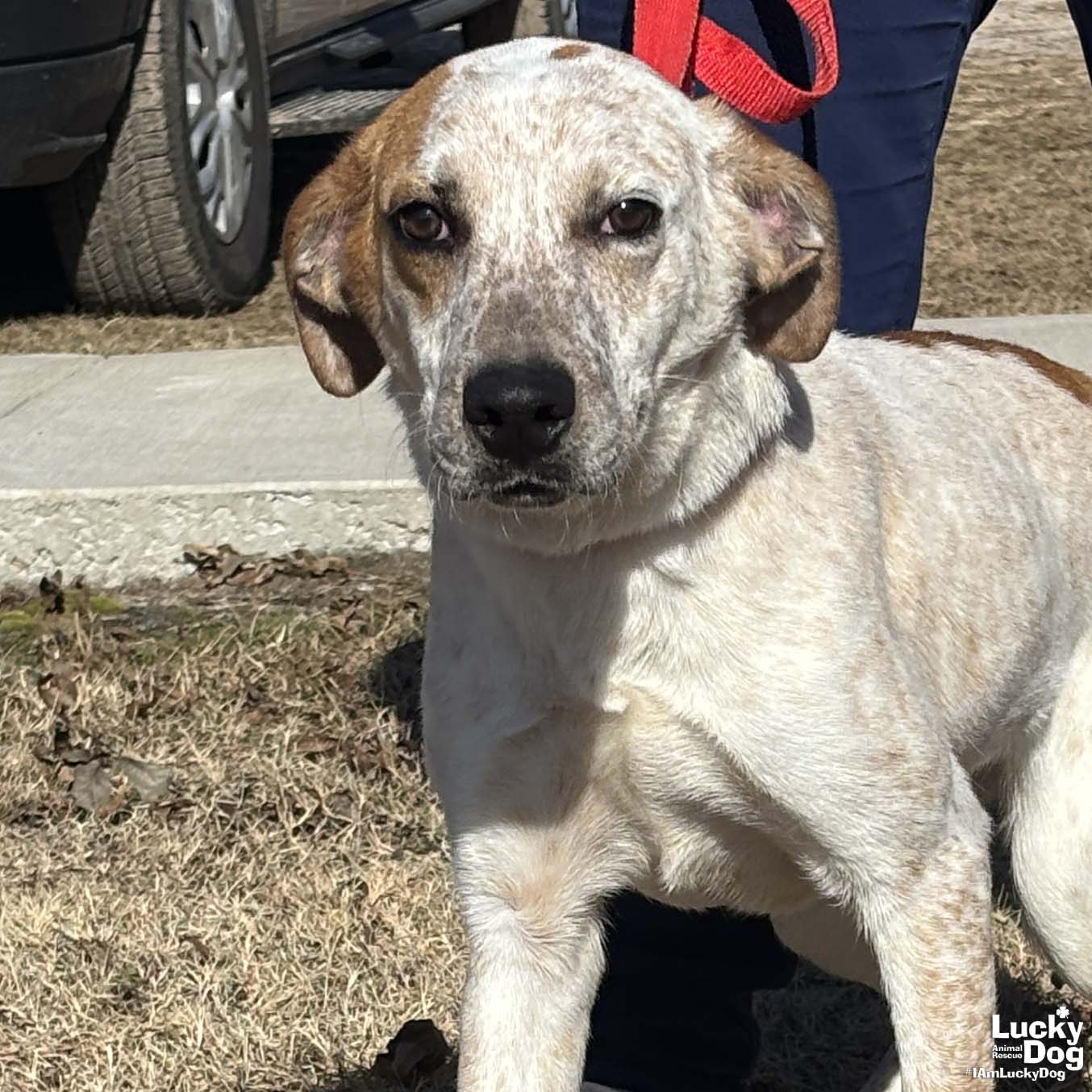 handsome speckled boy ready to play! YUMI NEEDS A FOSTER OR FOREVER HOME!!!! Name: Yumi Best Guess for Breed: Lab mix Best Guess for Age: 6 months as of December 2024 SEX: Male Approximate Weight: 39 lbs as of 12/16/24; he is still growing! Gets Along With: Other dogs! We haven’t seen him with kids or cats but he can be tested if you have them Currently Living at: South Carolina shelter; needs a foster or forever home in the DC area to get his freedom ride up here Yumi is Looking For: His forever home! Through no fault of his own this handsome cutie landed in the shelter. He’s barely out of puppyhood and hasn’t seen nearly enough of the world. He’s eagerly looking forward to having his own humans for romps in the park and all the adventures they can dream up. And dog school so he can show how super smart he is. And then pets and cuddles and belly scritches at the end of a fun day together. And he’ll want quality kibble and a cushy dog bed. Most of all, though, he wants to know he’s safe and loved. In exchange, he promises to make you smile – and to provide loyal companionship for all his days. What do you say? Is Yumi the one you see by your side? What My Foster Says About Me: We will update this once he has arrived in the DC area and spent some time with his foster Lucky Dog cannot guarantee any dog is housebroken. All of our dogs are working on their crate training. TO ADOPT: The adoption fee for this puppy is $485, which includes the cost of routine vetting, including vaccinations and transport from the shelter. If you are interested in adopting, please complete the Adoption Questionnaire online at bit.ly/adoptaluckydog . Lucky Dog Animal Rescue does our best to provide accurate information about the dogs we have for adoption. That said, we cannot make any guarantees about age, breed or temperament. Thank you for contacting Lucky Dog Animal Rescue and helping to save a life! Please visit us online at www.luckydoganimalrescue.org . BE A FOSTER!!! Fosters make it possible for Lucky Dog Animal Rescue to save and care for homeless and abandoned dogs! To learn about fostering, please contact fostering@luckydoganimalrescue.org! BE A SPONSOR!!!! Sponsors help Lucky Dog support the many dogs we save. To learn more about sponsorship, please contact info@luckydoganimalrescue.org !