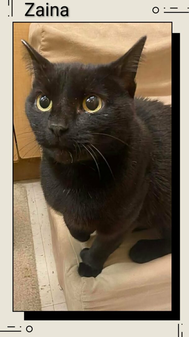 ZAINA – DSH, female, spayed, black, DOB June 18/23