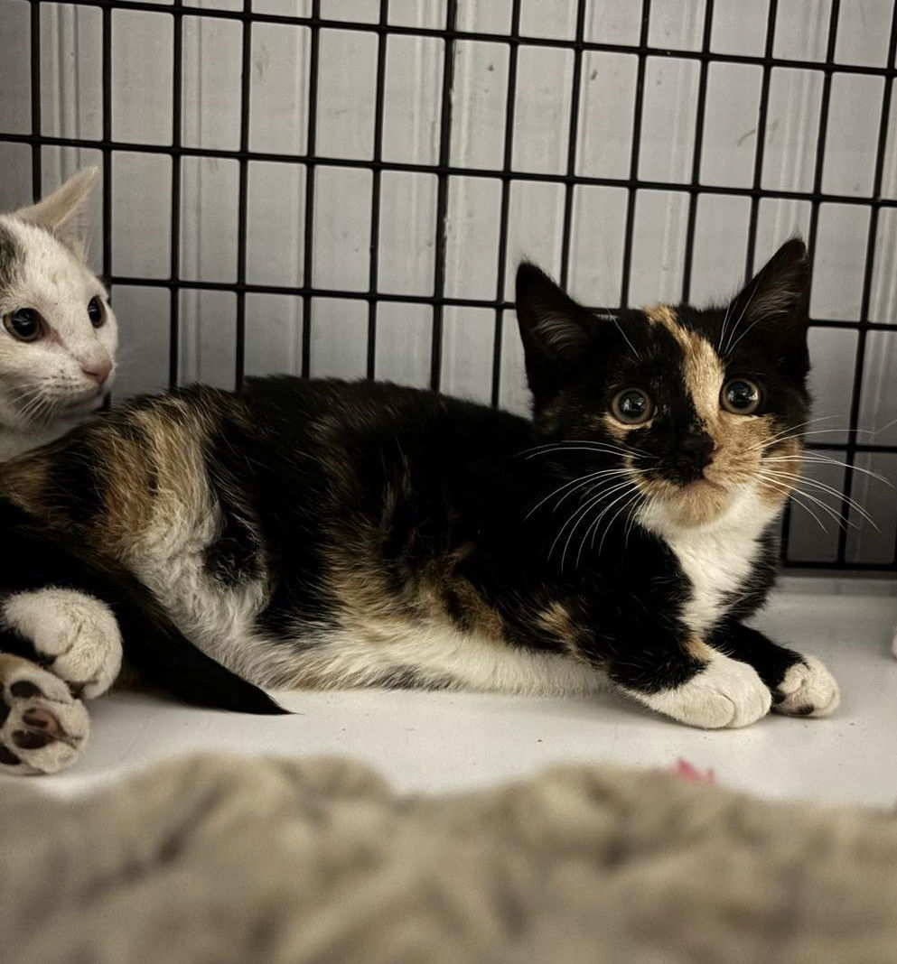 Nice to meet you—I’m Zamboni, the smooth operator of this feline crew! Just like my name suggests, I’m all about keeping things cool and gliding effortlessly through life. You’ll usually catch me following my sister Toboggan’s lead (she’s got great instincts, after all), especially when it comes to jumping on the couch for cuddles and pets—because who can resist a cozy snuggle session? When it’s playtime, I’m all about variety! Fabric balls and spring toys are my jam, but those speedy wand toys? Still working on keeping up with them—they’re fast (and I don’t want to smudge my sleek style). Speaking of play, my siblings and I are innovators: we’ve transformed the playpen into our very own kitten training ground. Think “Kitten Pole Vault,” complete with running starts and impressive leaps. Watch out, Olympics, here we come! If you’re looking for a laid-back but adventurous cuddle bug with a dash of athletic flair, I’ll skate straight into your heart. Life’s a game, and I’m here to make it pawsome! Zamboni =^..^= , DSH Calico , Female , DOB 12/15/2024 Adoption Application – Cat Around Town Project