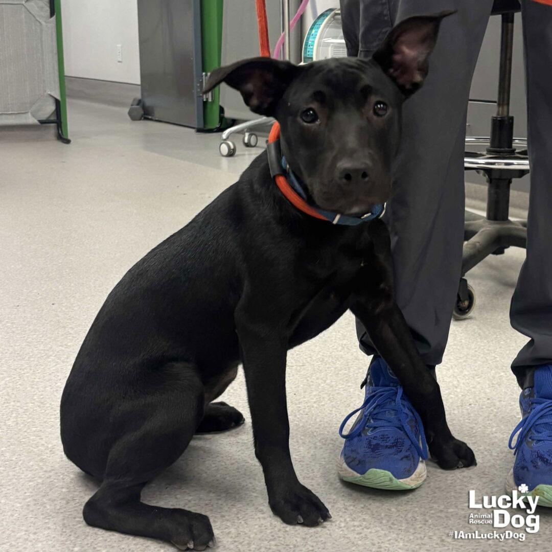 young girl ready to play! ZANEY NEEDS A FOSTER OR FOREVER HOME!!!! Name: Zaney Best Guess for Breed: Lab and terrier mix Best Guess for Age: 9 months as of February 2026 SEX: Female Approximate Weight: 31 lbs as of 2/11/26; she is still growing! Gets Along With: Other dogs! We haven’t seen her with cats or kids but we are happy to discuss integration techniques with any potential adopters! Currently Living at: South Carolina shelter – needs a foster or forever home in the DC area to get up here! Zaney is Looking For: Her forever home! This sweetie and her sister Zilly had a great time growing up together but now they’re ready to split up and get their own homes. Zaney hasn’t seen enough of the world yet, and is eagerly looking forward to having her own humans for sniffy walks and all the adventures they can dream up. And dog school so she can show how super smart she is. And then pets and cuddles and belly scritches at the end of a fun day together. And she’ll want quality kibble and a cushy dog bed. Most of all, though, she wants to know she’s safe and loved. In exchange she promises all the adoring gazes and happy tail wags she’s storing up, and loyal companionship for all her days. What do you say? Is Zaney the one you see by your side? What My Foster Says About Me: We will update this once she has spent time in foster care. Lucky Dog cannot guarantee any dog is housebroken. All of our dogs are working on their crate training. TO ADOPT: The adoption fee for this dog is $460, which includes the cost of routine vetting, including vaccinations and spay/neuter. If you are interested in adopting, please complete the Adoption Questionnaire online at bit.ly/adoptaluckydog . Lucky Dog Animal Rescue does our best to provide accurate information about the dogs we have for adoption. That said, we cannot make any guarantees about age, breed or temperament. Thank you for contacting Lucky Dog Animal Rescue and helping to save a life! Please visit us online at www.luckydoganimalrescue.org . BE A FOSTER!!! Fosters make it possible for Lucky Dog Animal Rescue to save and care for homeless and abandoned dogs! To learn about fostering, please contact fostering@luckydoganimalrescue.org! BE A SPONSOR!!!! Sponsors help Lucky Dog support the many dogs we save. To learn more about sponsorship, please contact info@luckydoganimalrescue.org !