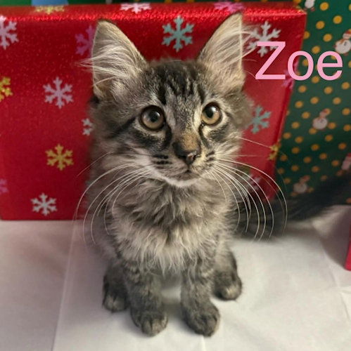 Zoe is a female gray tabby kitten, born on September 23, 2024. She is well accustomed to being around other pets and people. The adoption fee is $150. This covers the cost of spay/neuter, PVR, Rabies, flea, tick, ear mite and worm treatment. To adopt, you need to first fill out an application. Go to: https://rutherfordcountyhumanesociety.org/cat-adoption-application/ We are located in Western North Carolina. Optional transport is weekly. After your application is approved, we will contact you regarding cost and delivery if you so desire.