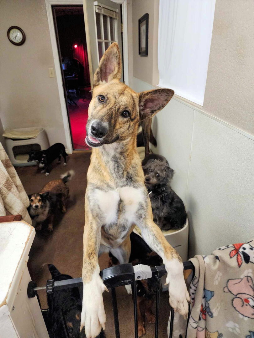 ZOEY Malamute/shepherd mix Spayed female 1 year old (est. June 30, 2023) 60 pounds; 28 inches tall at the shoulder Heartworm negative, spayed, vaccinated, microchipped House trained Dog door trained Dog friendly; dog heeler size or larger Cats unknown but has been unreactive to squirrels Smart, attentive, loving, wants to please Low-key, low-maintenance, goes-with-the-flow kinda gal Meet ZOEY, the ultimate companion for those who want the best of both worlds: a four-legger to share adventures with and a cuddle buddy for those lazy evenings on the couch. This low-key girl loves a good roll in the grass and thrives on quality time with her favorite human. Bonus: Independent and easy-going as she is, ZOEY will entertain herself and play with her doggy friends. Her number one requirement? She'd like her doggy friends to be heeler size or larger. ZOEY lives with several small dogs and a friend closer to her own size. She is being rehomed because due to recent changes in pack dynamics with the smaller dogs, ZOEY no longer is a good fit in the home. Her family wants both to keep their small dogs safe and to help ZOEY by finding her a home that is perfect for her. ZOEY is a fabulous dog who’s shown no interest in the squirrels outside the yard and that acted submissively when introduced to an also submissive but exuberantly friendly dog on his turf. ZOEY needs an immediate foster (short-term OK) or, preferably, an adopter by Friday, 11/5/2024.