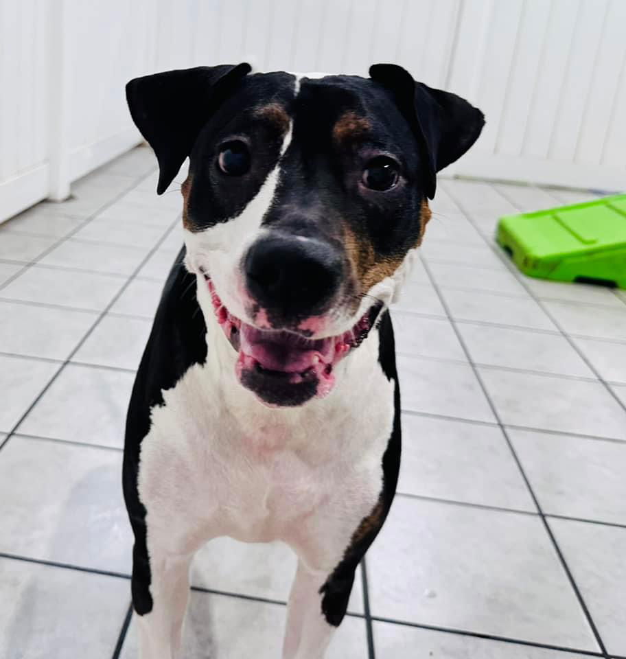 Zoey is an adorable multi color pit mix. She is 5 years old and 75lbs. She was surrendered to our rescue when her family could no longer care for her. Zoey is a playful girl that loves other dogs, and would love a fur sibling . She is house trained and crate trained. Zoey loves children of all ages and previously spent a lot of time with kids ages 6-10. She does well in a car and on leash. Zoey is an affectionate girl who would be a great addition to any family. Apply to adopt ZOEY ROMAN NJ at www.ehrdogs.org