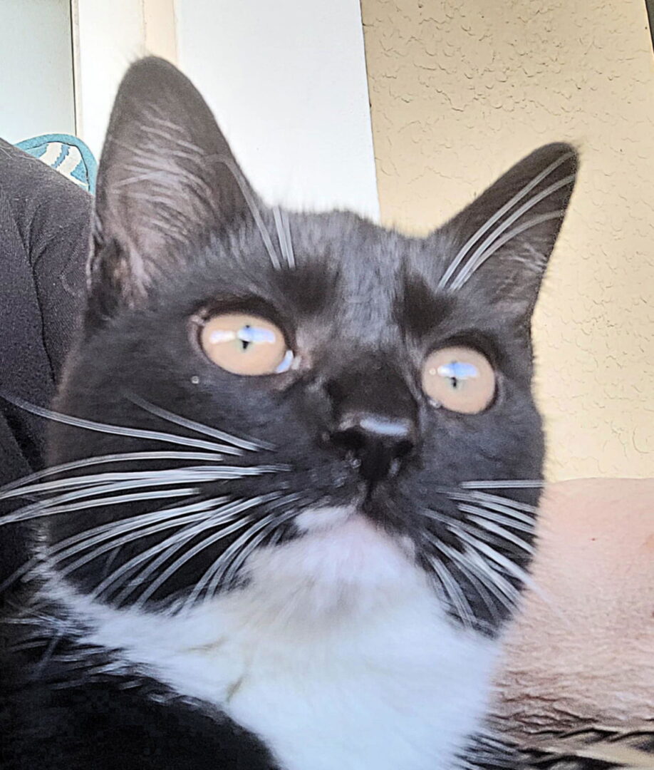 Bio for Zola. About 5-6 months old. Zola is about as chill as kittens come. She's timid and shy but once she trusts you she will want to sit with you and put her head on your lap. She has a couple of bursts of play energy every day but otherwise she's content to chill and observe. She has a blind fostermate who wrestles and chases toys with her when their bursts of energy match. Zola loves her perch and snuggling in a chair. She's sort of an "old soul". All of our foster kitties are raised in foster homes, are up to date on vaccines for their size, spayed/neutered, FELV/FIV tested and microchipped. Interested in adopting? Fill out and adoption application here: https://www.sprkittycatshack.org/adoptions