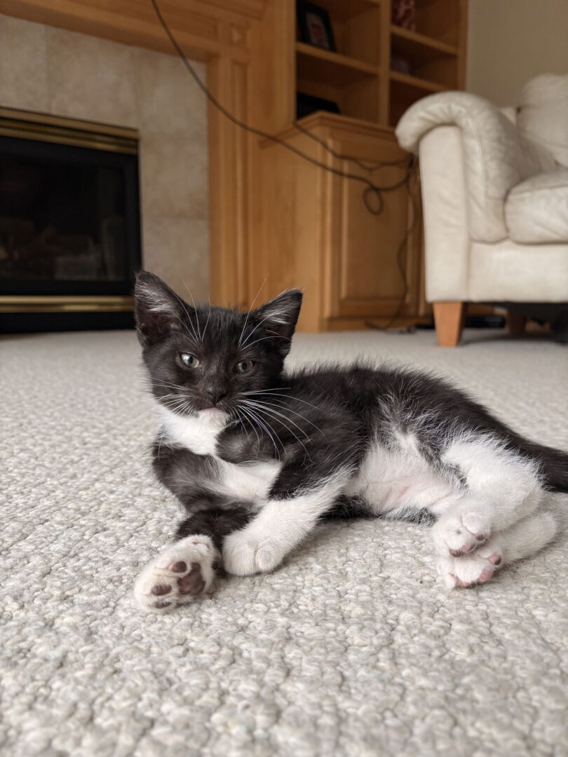 See Zoro C4725’s HomepageGo to our official websiteYou can fill out an adoption application online on our official website. Hello there! My name is Zoro. I am a handsome and fluffy tuxedo kitten! I love giving you kisses! I enjoy being around you to snuggle with you, even when you sleep at night. If you pick me up and pet me, I will thank you by giving you an ongoing purr of love! I am very playful and will even play with a treat you give me first, to see it move around at the touch of my paws. I get along well with other pets. I have the pleasure of being around Bauer, my foster’s resident dog. I have so much fun playing with both young and mature cats. I do get along well with anyone! I believe that has everything to do with my relaxed personality. In my free time, I love to play with toys, use a scratching post, chase after my other pet friends, and take short naps during the day. I am looking for my furever family! Will it be you? Interested in adopting this lovable animal? Please go to our website www.wagsmn.org and fill out an Adoption Application. Once the application is processed, a Wags representative will contact you, answer any questions you may have, and set up a time/location for a meet and greet! A home visit is required prior to adoption. Thank you for choosing to adopt! Breed and temperament determination: Wags & Whiskers Animal Rescue attempts to determine breed and temperament using a combination of looks, information provided to us at intake, and our experience with the animal while in our Rescue. We do not guarantee this determination.