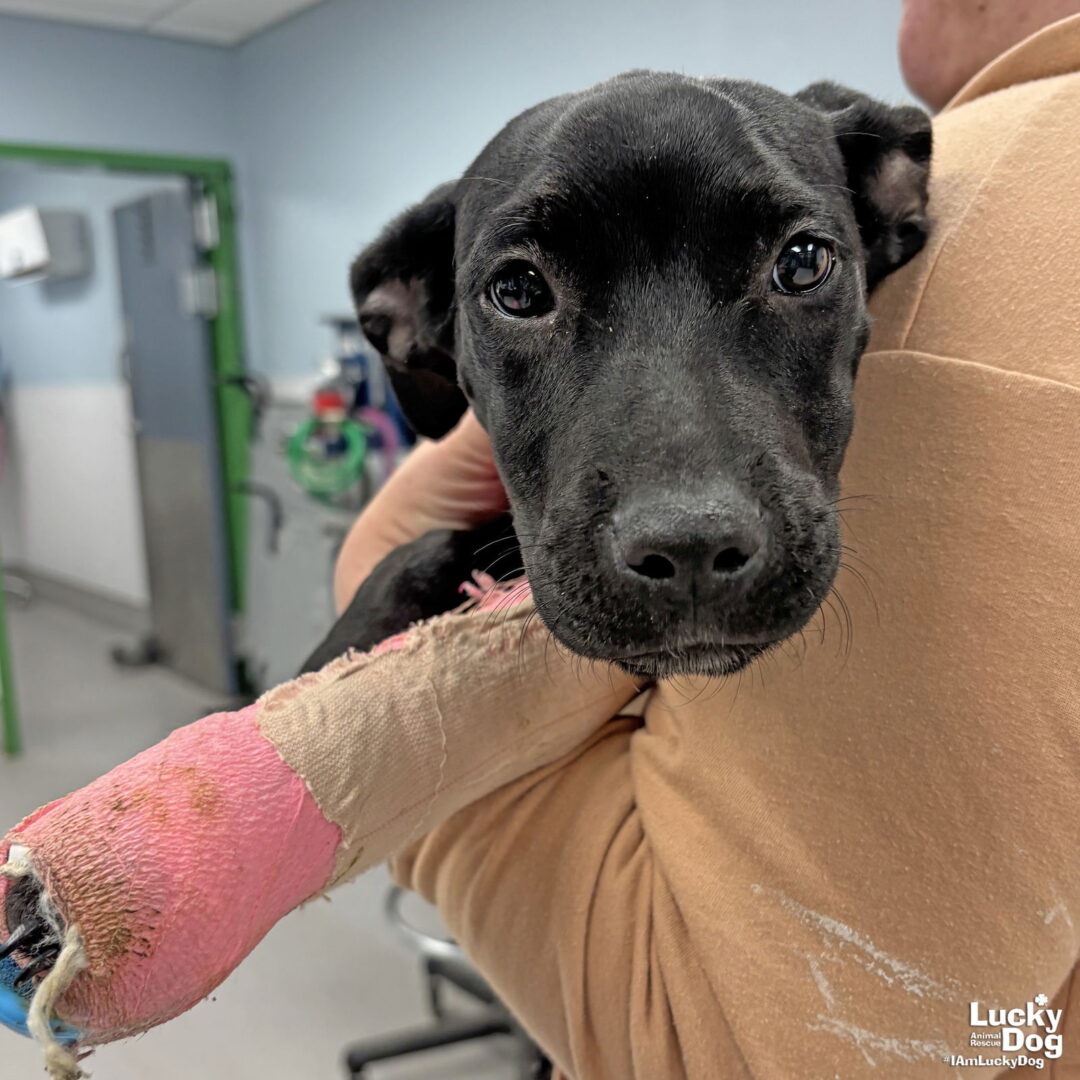 baby girl seeking her family! ZURI NEEDS A FOSTER OR FOREVER HOME!!!! Name: Zuri Best Guess for Breed: Lab mix Best Guess for Age: 4 months as of December 2025 SEX: Female Estimated Weight (puppies’ weights change quickly!): 16 lbs as of 12/9/25 Gets Along With: Most puppies are in the prime of their socialization window and will do well with other dogs, cats and kids so long as they receive patience and proper training. Currently Living at: South Carolina shelter – needs a foster or forever home in the DC area to get up here! Special Adoption Considerations: Puppies under 6 months of age need to have multiple potty breaks/exercise throughout the day. Potential adopters with a standard 8-hour workday must be willing to make arrangements to meet the needs of their puppy. Zuri is Looking For: Hi! I’m Zuri and I’m looking for my family! I arrived in Lucky Dog’s care with a broken leg and it hurt! But I was super brave and they put a cast on it and I’m getting all better – and I want to make up for lost running and playing time! Lots of walks and romps, please! And opportunities to make pup pals! And lots and lots of snuggles! Most of all, though, I want to know where I belong, that I’m safe and loved. In exchange I promise love and loyal companionship for all my days. What do you say? Do I get to grow up with you? What My Foster Says About Me: We will update this once she has spent time in foster care. Puppy Vetting Requirements: Lucky Puppies have had their age appropriate vaccines, but may not yet be “fully” vaccinated. It is the adopter’s responsibility to ensure that the remaining puppy vaccines are given at the appropriate time. Please also keep in mind that, until your puppy is fully vaccinated, they are at greater risk for illness than an adult dog. Your new puppy will need to work on their house training and will also need to go to obedience school so they can grow into a well-socialized dog! TO ADOPT: The adoption fee for this puppy is $485, which includes the cost of routine vetting and transport from the shelter. If you are interested in adopting, please complete the Adoption Questionnaire online bit.ly/adoptaluckydog Lucky Dog Animal Rescue does our best to provide accurate information about the dogs we have for adoption. That said, we cannot make any guarantees about age, breed or temperament. Thank you for contacting Lucky Dog Animal Rescue and helping to save a life! Please visit us online at www.luckydoganimalrescue.org . BE A FOSTER!!! Fosters make it possible for Lucky Dog Animal Rescue to save and care for homeless and abandoned dogs! To learn about fostering, please contact fostering@luckydoganimalrescue.org! BE A SPONSOR!!!! Sponsors help Lucky Dog support the many dogs we save. To learn more about sponsorship, please contact info@luckydoganimalrescue.org . ​